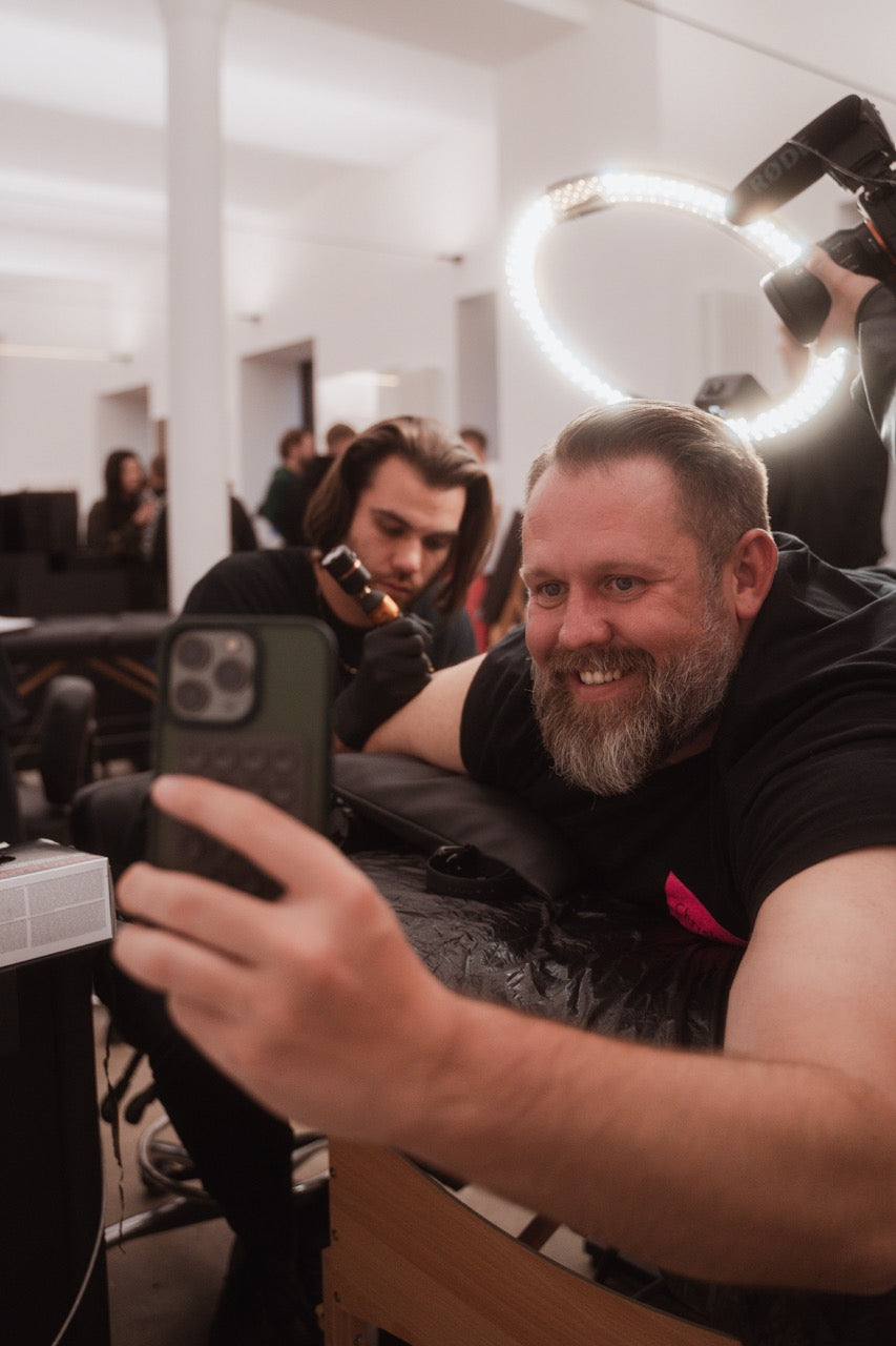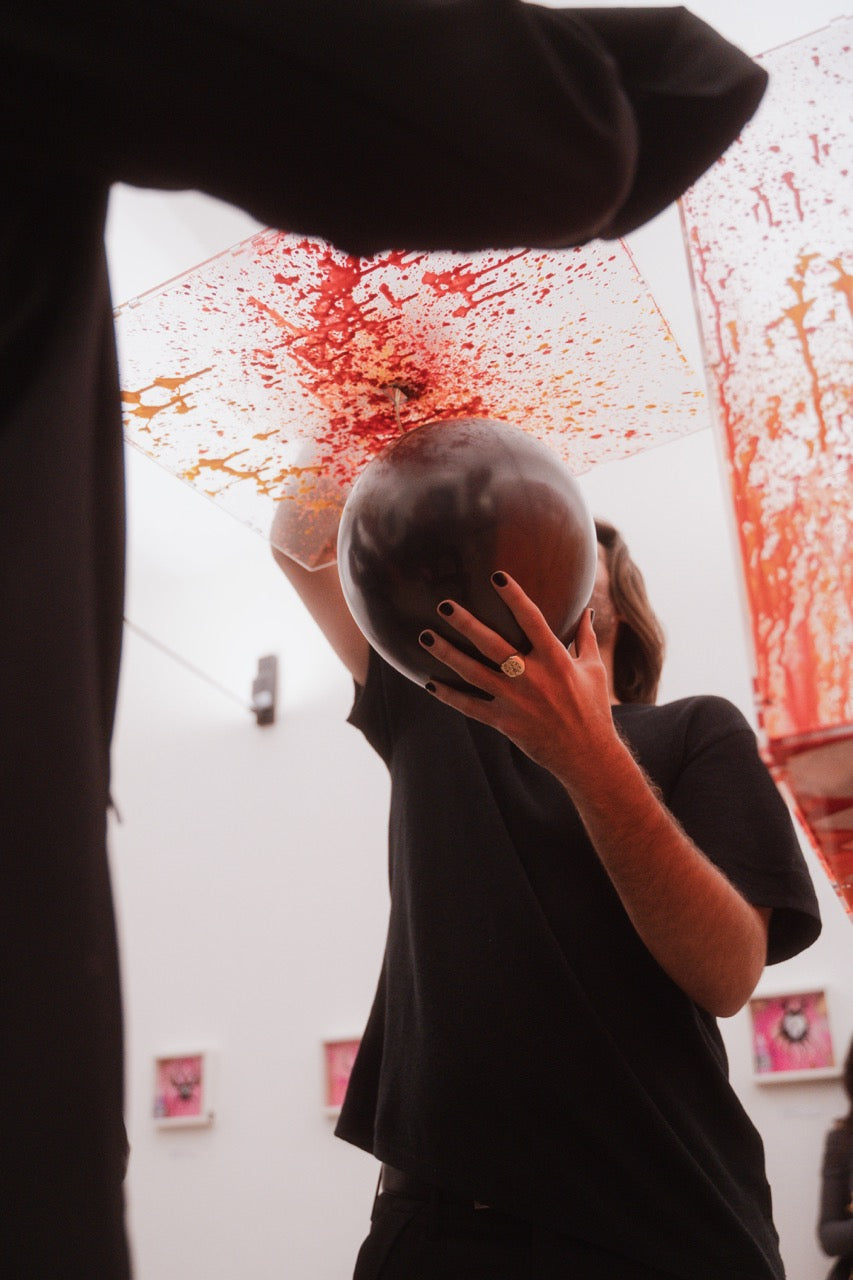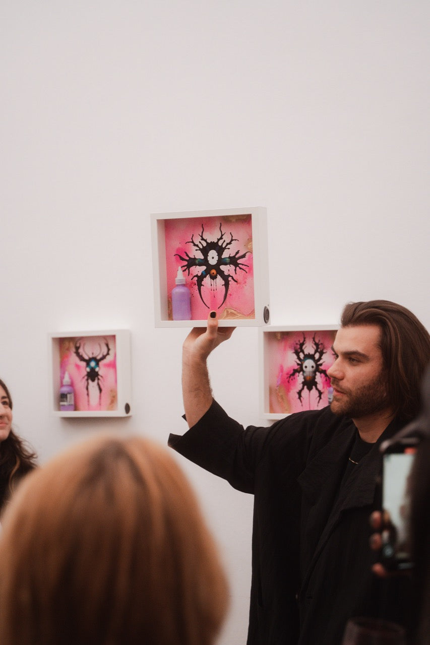 Die Flecken sind Farbbomben, die explodieren und dabei neue Wesen gebären – klecksartige Kreaturen, die zwischen Chaos und Form entstehen. Jeder Fleck hat seine eigene Persönlichkeit, roh, direkt und unverstellt. In Kooperation mit vier renommierten Tattoo-Studios in Köln, Berlin, München und Stuttgart konnten Besucher die Flecken nicht nur als Bilder erleben, sondern sie auch als Tattoo spüren. Damit überschreiten die Flecken die Grenzen der Leinwand. Sie sind Kunstwerke, die aus dem Zufall geboren werden – und als tätowierte Zeichen weiterleben. Ein Experiment zwischen Explosion, Zeichnung und Erinnerung.