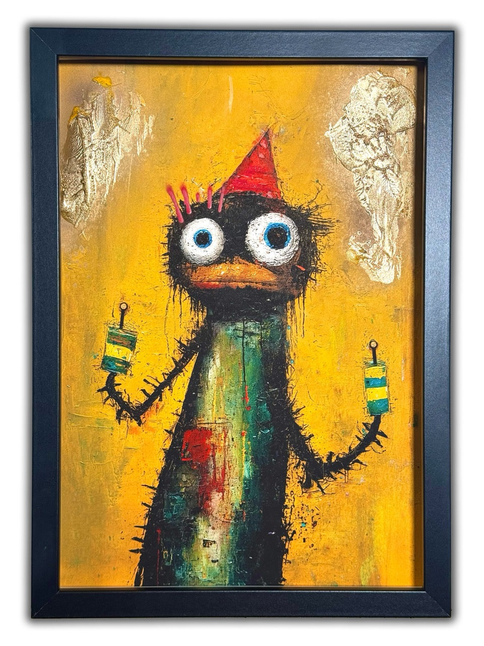 "Party Crasher" - Feiertag Fratze Unikat + Gratis Rahmen